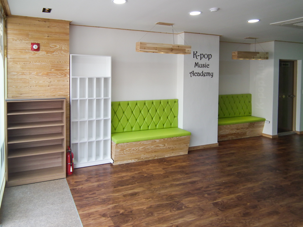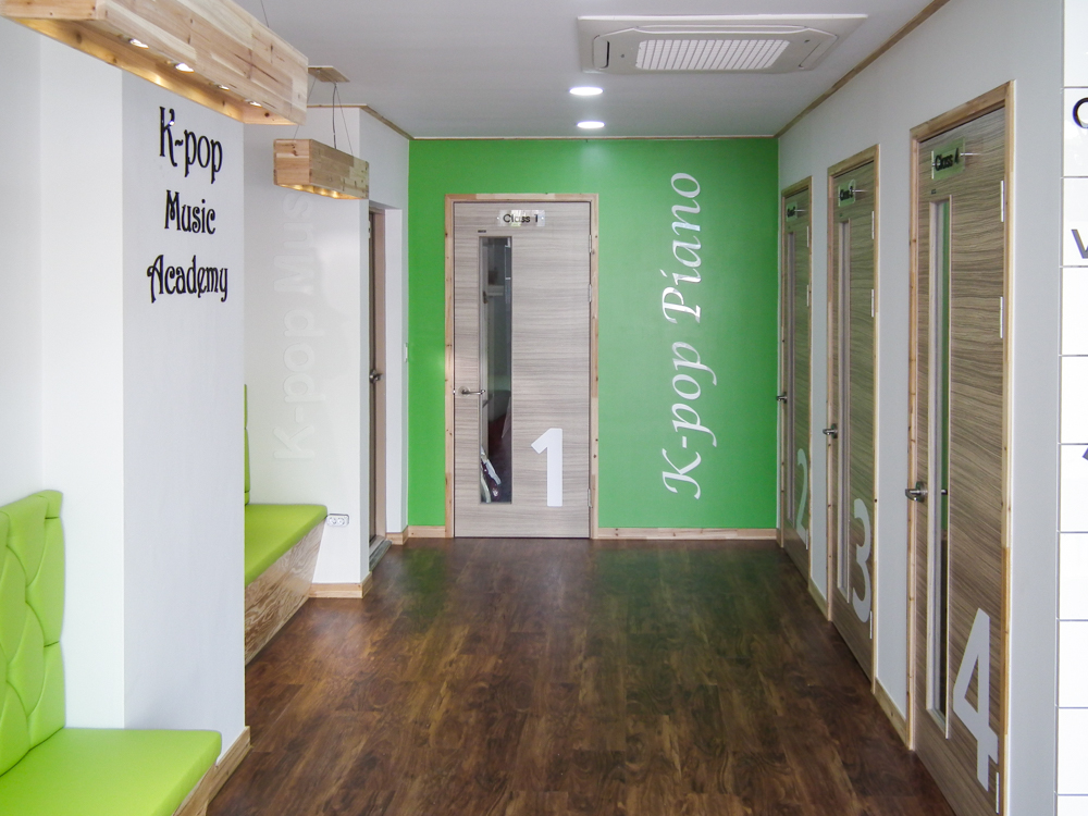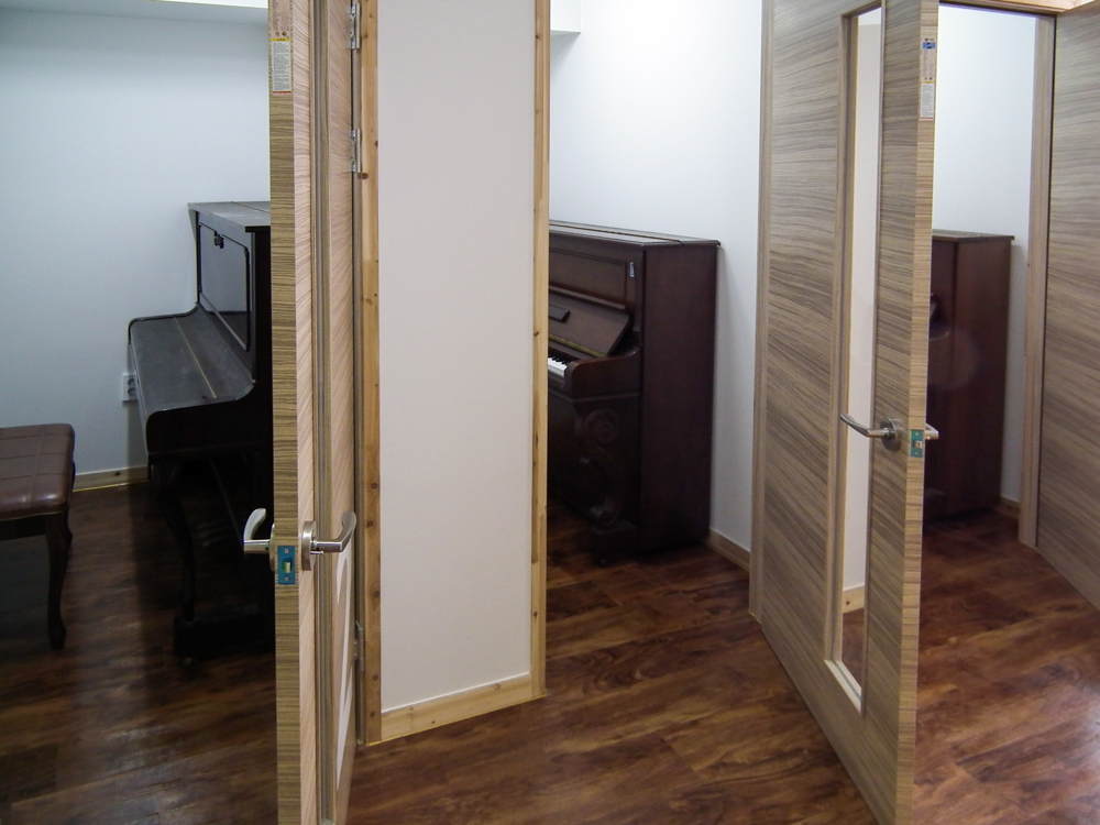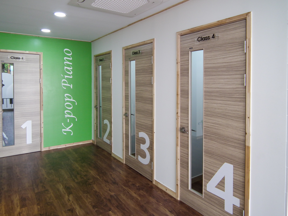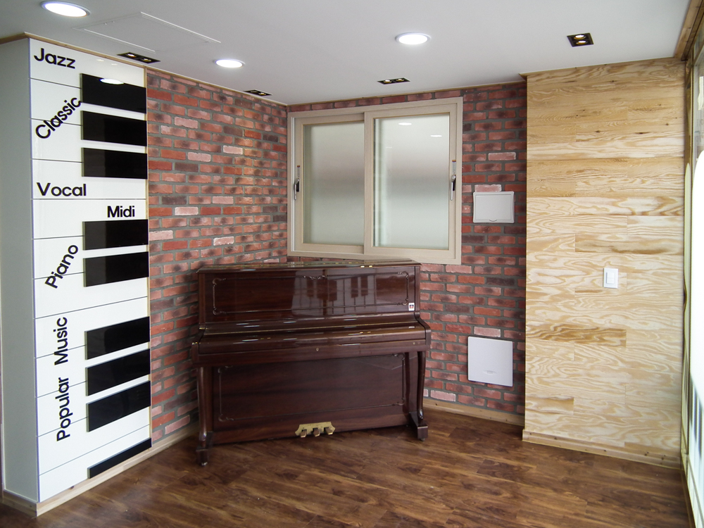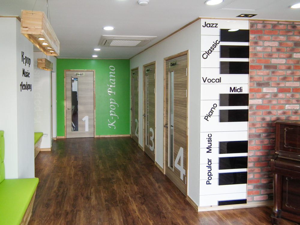 서울 은펴구 역촌동에 위치한 17평 피아노 교습소 인테리어 현장입니다. 교습소 출입구 부터 피아노를 상징하는 건반 디자인으로 포인트를 주었고, 각 연습실간 서로 방해 되지 않도록 방음에 신경써서 디자인 및 시공하였습니다. |