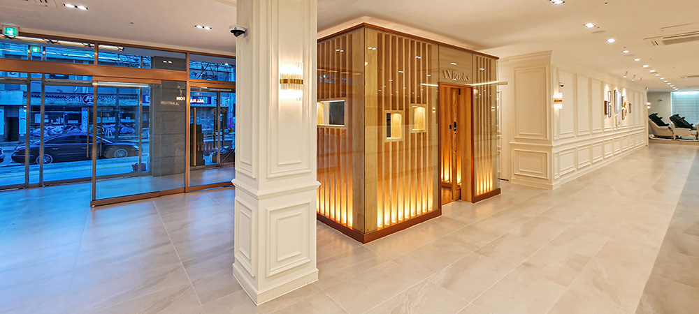 관악구 신림동에 위치한 150평 규모 건물 로비 인테리어 현장입니다. |
