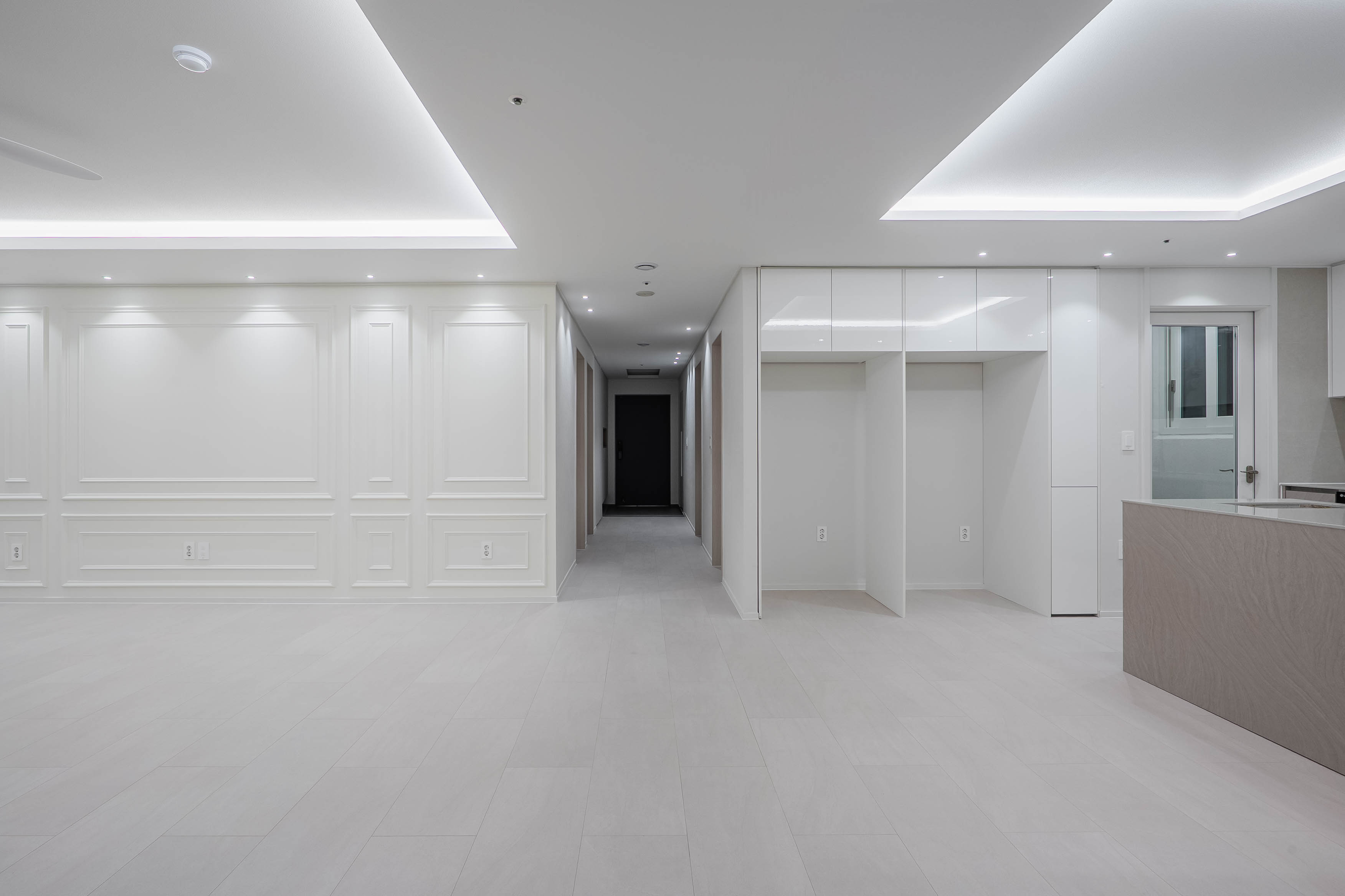 남양주 별내에 위치한 남광하우스토리 46평 아파트 인테리어 입니다. 이국적인 벽체마감과 모던하고 보편적인 국내 주거문화의 정서가 모두 들어가도록 디자인 시공하였습니다. |