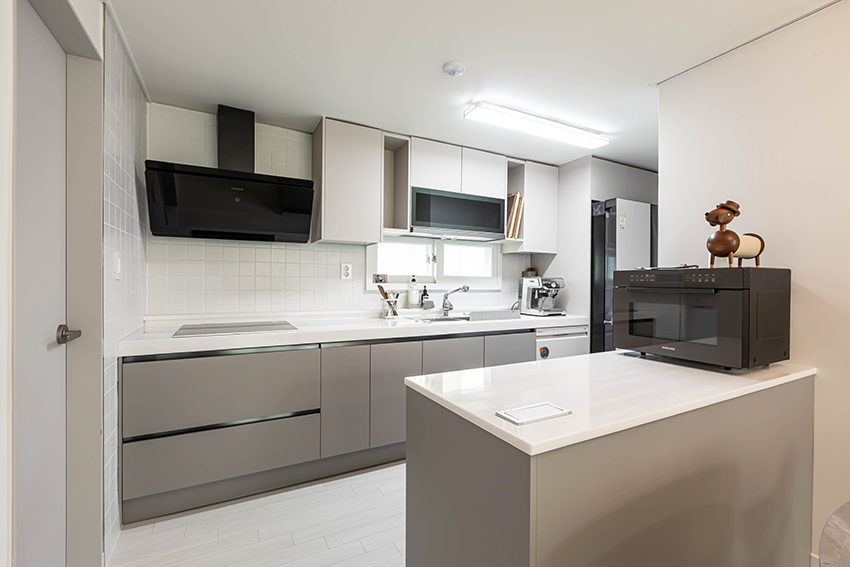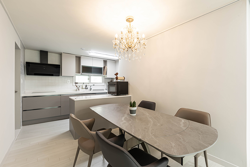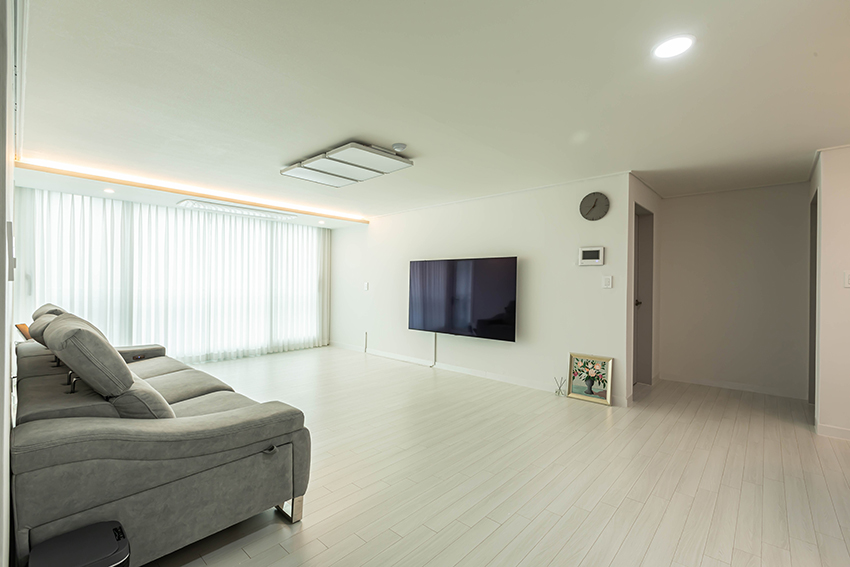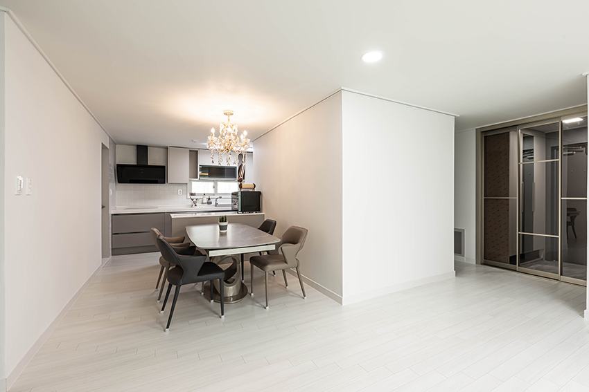 부평 중동 그린타운 아파트 34평형의 변화된 모습을 소개합니다. 이번 시공 사례는 불필요한 장식을 걷어내고, 선과 면을 깔끔하게 정리하여 ‘심플함 속의 품격’을 구현하는 데 집중했습니다. 1. 개방감과 아늑함이 공존하는 거실 거실은 화이트 톤의 벽면과 밝은 우드 패턴의 바닥재를 매치하여 공간이 훨씬 넓어 보이도록 연출했습니다. 천장에는 메인 조명 외에도 커튼박스를 따라 흐르는 간접 조명을 설치해 밤에는 은은하고 따뜻한 분위기를 즐길 수 있도록 했습니다. 미니멀한 가구 배치로 시각적인 노이즈를 줄여 가족들이 온전히 휴식에 집중할 수 있는 환경을 만들었습니다. 2. 효율성과 미학을 더한 주방 주방은 기존의 답답한 구조에서 벗어나 대면형 아일랜드를 배치했습니다. 상부장은 화이트로, 하부장은 차분한 그레이 톤으로 구성해 안정감을 주었으며, 사각 싱크볼과 무광 수전으로 세련미를 더했습니다. 특히 다이닝 공간 위로 떨어지는 화려한 샹들리에 조명은 자칫 단조로울 수 있는 모노톤 인테리어에 화룡점정이 되어, 매일의 식사 시간을 특별한 다이닝 경험으로 바꿔줍니다. 3. 개인의 취향을 담은 침실과 알파룸 안방은 휴식이라는 본연의 기능에 충실했습니다. 따뜻한 우드 템바보드 헤드보드와 조명을 결합해 호텔 같은 아늑함을 연출했습니다. 또한, 작은 방은 클라이언트의 라이프스타일을 반영해 집중도를 높인 프라이빗 PC룸으로 재탄생시켰습니다. 깔끔한 수납 가구와 조명 배치를 통해 업무와 취미를 동시에 즐길 수 있는 공간 효율성을 극대화했습니다. 4. 고급스러운 석재 질감의 욕실 욕실은 그레이 톤의 대형 포세린 타일을 사용하여 매끄럽고 고급스러운 무드를 조성했습니다. 젠다이 선반을 시공해 수납의 편리함을 더했으며, 거울 슬라이딩장을 설치해 공간이 더 넓어 보이는 효과를 주었습니다. "비우고 채우는 과정에서 완성되는 주거의 미학" 공간채움 인테리어는 고객님의 취향을 단순히 나열하는 것이 아니라, 삶의 방식에 맞춰 조화롭게 설계합니다. 이번 부평 그린타운 아파트 시공 사례처럼 우리 집만의 특별한 변화를 꿈꾸신다면 언제든 상담을 요청해 주세요. |